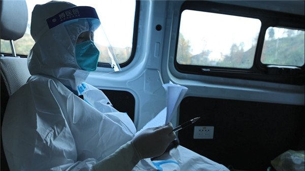 “遇到最大的困難是時(shí)常都是路況不好,路上常常塵土飛揚(yáng)、霧天視線不清,尤其是遇到下雨天的陡坡泥濘路面最擔(dān)心,擔(dān)心路不好走的危險(xiǎn),更擔(dān)心耽誤了測(cè)核酸的進(jìn)程。有時(shí)候要反復(fù)試幾十遍,才好不容易上去,這樣就會(huì)耽擱采樣時(shí)間,我們內(nèi)心也很焦急,但是沒(méi)辦法,因?yàn)樯铰凡缓米?,路途常常都是幾十公里,就這樣每天幾乎都是從天明到黑夜。”