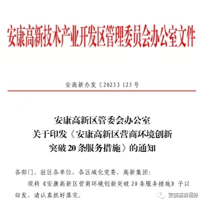 聚焦“三個年” | 安康高新區(qū)出臺營商環(huán)境創(chuàng)新突破“二十條”服務(wù)措施