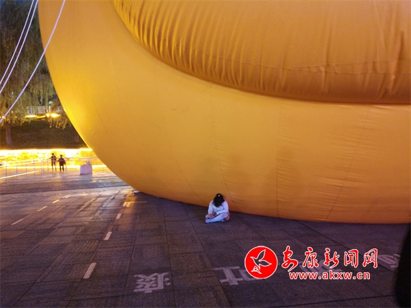 10月6日,漢江"大黃鴨"打卡點(diǎn),出現(xiàn)了翻越圍欄,進(jìn)入充氣氣球禁止區(qū)域的不文明旅游行為。(實(shí)習(xí)生 康研 王千龍)