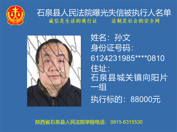 曝光失信 | 石泉縣人民法院曝光失信被執(zhí)行人名單(2023年第六期)