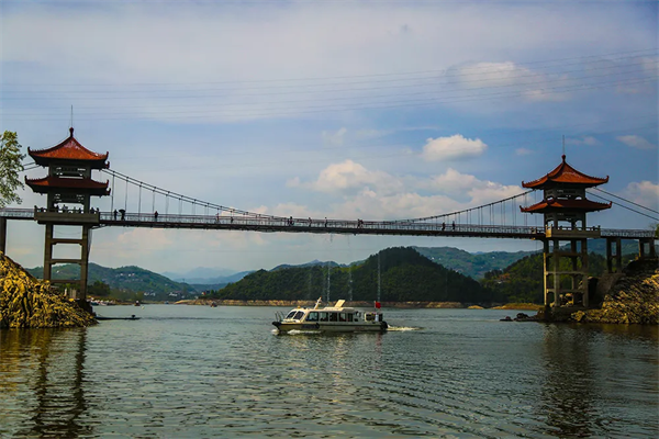 瀛湖翠屏島玉清橋,一條取自瀛湖水的人工瀑布,讓穿梭橋下的游客,徹底感受到了來自瀛湖的清涼。