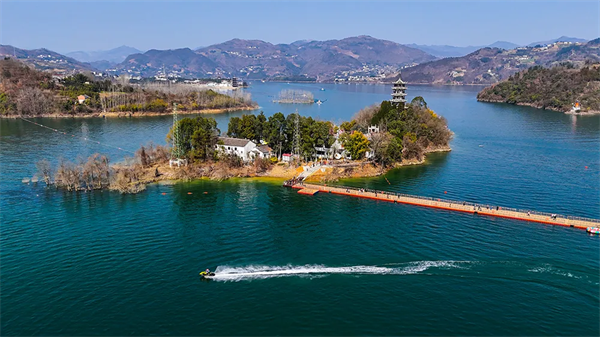 晨煙、翠山、碧湖、春茶、魚香、漢服……一連串的關(guān)鍵詞,串聯(lián)起清明長假瀛湖的春天里。