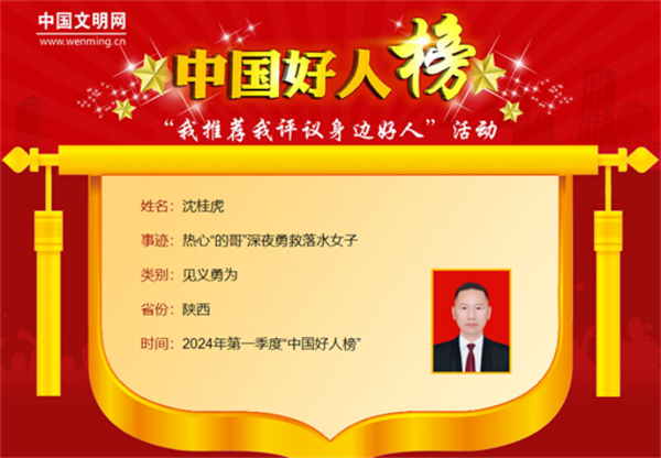 4月18日,2024年第一季度“中國(guó)好人榜”發(fā)布儀式暨全國(guó)道德模范與身邊好人現(xiàn)場(chǎng)交流活動(dòng),在江西省九江市舉辦。我市沈桂虎光榮上榜。