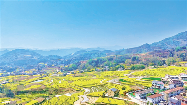 此時(shí),正值油菜花的最佳觀賞季節(jié),踏入漩渦鎮(zhèn),仿若踏入了一個(gè)被歲月遺忘的世外桃源。山巒連綿起伏、梯田層層疊疊如天梯般蜿蜒而上,大者如曲池,小者似新月,在陽(yáng)光下閃耀著金色的光。