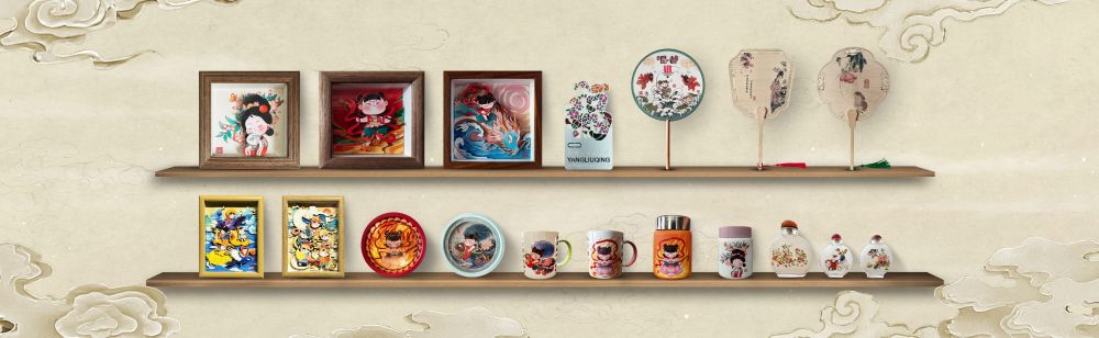 在天津古文化街的門店展廳內(nèi),經(jīng)典的“胖娃娃”不再囿于紙面,而是化作杯盞上的裝飾、絲巾間的雅韻、掛件中的巧思。