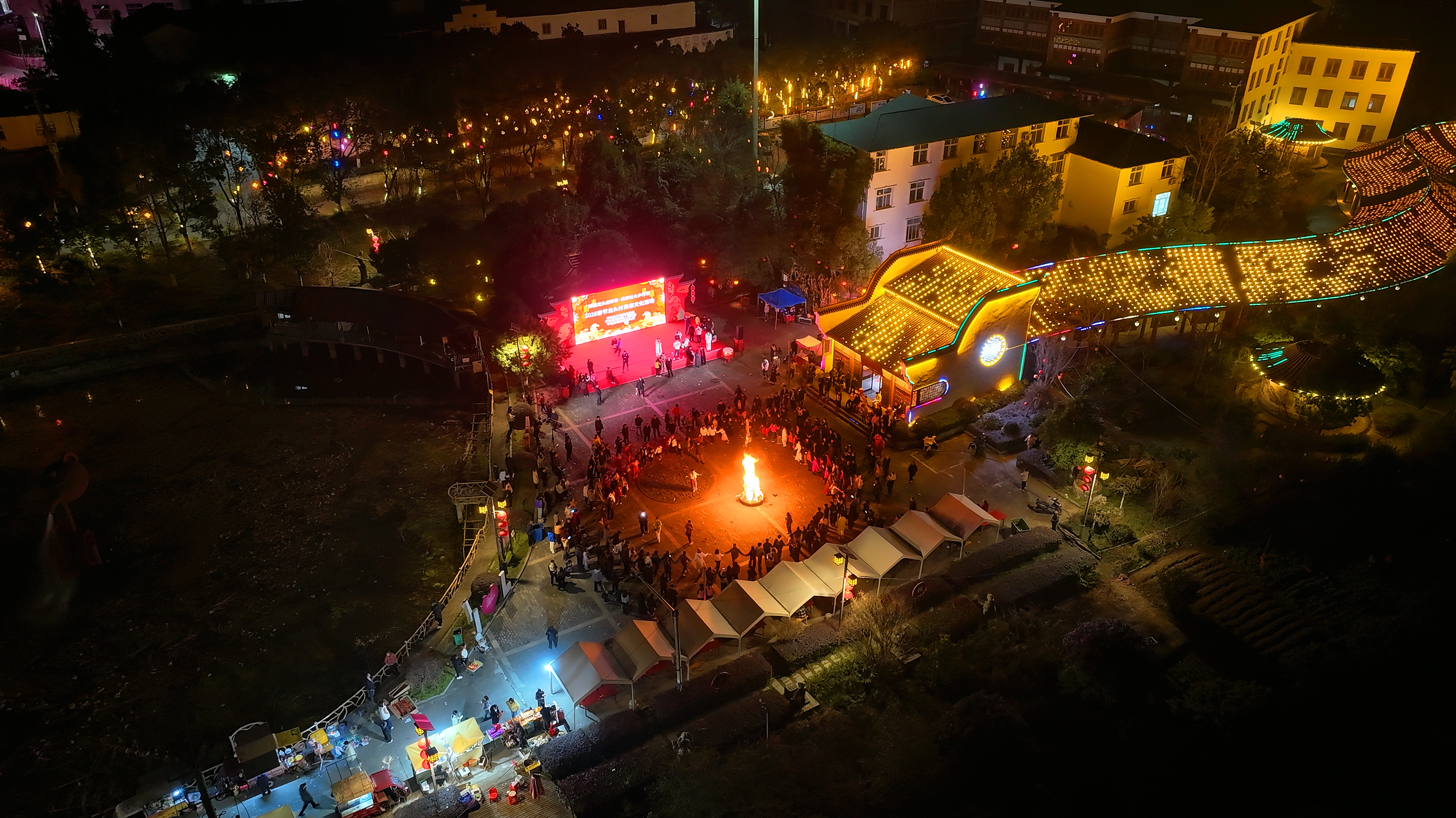 夜晚的龍頭村篝火晚會。 王韜 攝